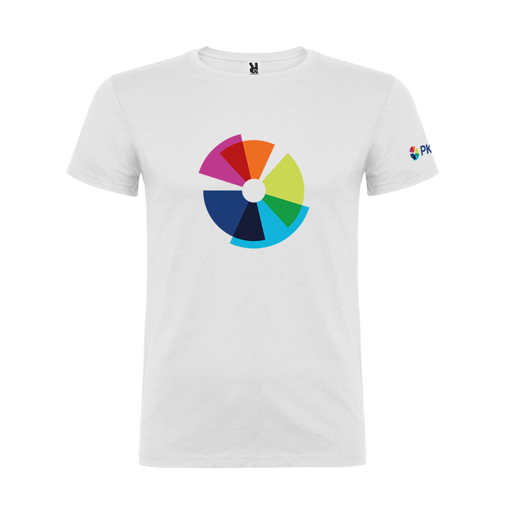 Short-sleeve t-shirt with double layer crew neck in elastane, made in tubular fabric for adults. Reinforced covered seams in collar. Removable label. Single Jersey knit of 100% Cotton, 155 g/m2.